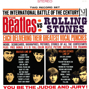 A cash-in album by Vee-Jay that tried to capitalize on the fued between the Beatles and Stones. |