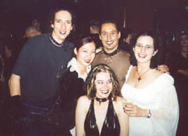 I arrived late Wednesday evening, just in time to head down to the Vogue where there was some frightening karaoke and then Nocturne. My more electronica-oriented comrades were less impressed with the fairly crunchy sound of this four piece. My satanic little ears perked up at the churning thump their bassist was producing. A word to the redneck goth-bashers out there. If you want to pick on somebody I'd stay the hell away from this guy. He definitely shattered the scrawny gothboy stereotype. I watched in admiration-the girls just drooled. I was however, too exhausted to fully appreciate Nocturne's music or their bassist's abs. This was sad because their somewhat Genitortureresque sound was very much to my taste. Still there was the rest of the weekend.