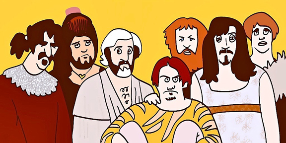 The first Friday of most every month throughout 1967 and into ’68, I was formally excused from school so that my mother could take me all the way into Toronto for orthodontic appointments. As due reward afterwards, I would be treated to a tasty french-fry-and-chocolate-milk lunch in the sumptuous Eaton’s Department Store cafeteria, then left for an hour alone in the adjacent Music Department while dear mom ran her errands elsewhere. Gawd, I truly was deep in pre-teen heaven in there, believe you me: Guitars – just like the one Tommy Smothers played on TV every week! – lining each wall, while right over there were more record albums gathered alphabetically together in one place than my wide young eyes had ever ever seen. But it was while methodically flipping through that “Misc. M” bin one innocent Friday in search of the latest Monkees long-player that I came across an image which shook me to the very core of my hitherto safe, sound, Micky’n’Mike-loving spine: A foreboding, dark purple sci-fi sky shot through with lightning bolts, beneath which were strewn a below-motley crew of comic-book cut-outs (some of whose eyes were obscured with sinister black bars!) And in front of all that stood what appeared to be a group of bearded, ugly, definitely NON-Monkee-looking men wearing… wearing dresses and standing by a mess of rotten vegetables which for some reason spelled out the word “mothers.” Subconsciously at least, I recognized this was for some reason like the picture on the front of my latest Beatle album. Sort of. But I also instinctively gathered something BAD was afoot. So for the next several months, as if revisiting a decaying body rotting in the back woods or the scene of some other such crime, I’d bravely let Dr. Shanks, D.D.S. rip around my mouth, rush with Mom to scarf down some Eaton’s fast-food, then creep back towards those record racks to check if …IT… was still hidden there. Why, one grave Friday I even showed the offending, but somehow alluring record jacket to my mother (who, immediately sensing things untoward indeed, said “put that down, Gary. We’re going home.”)