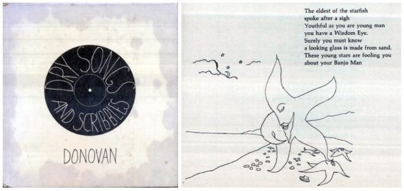 "Dry Songs And Scribbles" by Donovan The first book we will check out is Dry Songs And Scribbles by Donovan. Published in 1971 by Doubleday, Dry songs And Scribbles features poems, song lyrics and drawings by singer Donovan Leitch. This hardback rarity also contains black and white photos of Donovan. Quite Rightly.