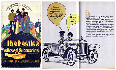 "Yellow Submarine" by Max Wilk This 1968 paperback by Max Wilk is a delightful and trippy hybrid of comic and text. It tells the story of The Beatles animated film of the same name. 128 pages, all in color.It does not follow the finished storyline of the film, because the final script was not ready. This originally sold for 95 cents when published. It is now valued at $15-20 in NM (near mint) condition.