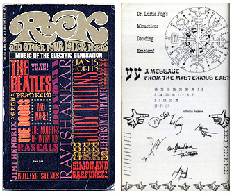 The last book we will look at is a 1968 paperback published by Bantam Books. Sub-titled “Music Of The Electric Generation,” It is very much a product of the then exploding 60’s counter-culture. The graphics and photos are laid out in a psychedelic-like style. The text explains the importance of the new pop culture and covers artists like Jefferson Airplane, The Raiders, Cream, The Rolling Stones, The Mothers, Bob Dylan and many more. There are tons of photos here, all are in black and white and some pages even fold out.