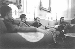 Kurt: You're absolutely right when you say that the Scattered Pages material is vastly different from Deadwood Forests' recordings up to now (I simply use the 3/4ths Deadwood approach as a selling point for folks who ask about what Deadwood Forest is doing now). However, I still regard this as a valid selling point because although Brandon's compositions are quite different, the approach we take towards the arrangement and production of the songs is very much the same. We are committed to dynamic and concise arrangements (admittedly sometimes to excess) and Jon Brion-like production, you know, rhythmically busy with lots of Mellotron and strings. (Deadwood didn't have the luxury of strings in recording "Mellodramatic" but definitely would have used them if given the opportunity). --- Ryan, Mitch, Brandon, Andy and myself have all known each other since short pants (we are all now 25 except Mitch who's 24) and we have always had a great amount of mutual respect and admiration for each other as musicians. So the change from Deadwood Forest to the Scattered Pages was pretty seamless and simple. Mitch moved to Las Vegas to take care of his Grandfather around the same time that Ryan, Andy and myself moved back to Houston. Brandon had been living there for a few years and had developed a slew of great songs so we decided to begin this project in order to bring Brandon's songs to their full potential as live arrangements and as recordings. We've been working towards this goal since Jan. 2002, and we're pleased about our prospects. In fact it may turn out that the Scattered Pages will be the best framework for us all to most equally contribute towards a single band.