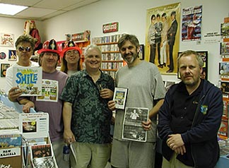 Although the turnout for the Atlanta SMiLE Gathering II was smaller than the 2003 ASG, there was a great surprise in a visitor that we had from Copenhagen, Denmark! Circle Sky had contacted me via e-mail a few days before the event to say that they got a phone call from a gentleman in Denmark that planned on attending and would be bringing his "SMiLE film". Very cryptic indeed, but I was very curious! And more than a little puzzled that someone would fly all the way from Europe to attend what we always advertise as an "informal" gathering (not to be confused with a full-blown "fest"). When I arrived at Circle Sky a few minutes before the scheduled start time, there was only one person in the store besides Doyle and Donnie (the ever helpful owner and staff of Circle Sky). As this stranger was quietly browsing through records, Donnie whispered, "that's him…the guy from Denmark" - so I walked up an introduced myself. Rasmus Skotte was decked out in a Brian Wilson tour shirt and jacket and had a "Brian Wilson Smile" satchel. When I asked him about all his Brian gear, he mentioned that he saw Brian the first week that SMiLE was performed in London and attended several shows. After talking about these historic concerts I asked him about his film. He actually had two Brian Wilson related films that he had made and had brought both of them on DVD for us to see at the SMiLE Gathering! No one else had arrived yet, so we went ahead and put the first film in, DUMB ANGEL FAIRY TALE. As if on queue, this is the moment that everybody started to arrive - including "regulars" from the last ASM: Ray Taylor, Tom Ekwurtzel, Jez Graham, Jim Gray and Bill Graham. Of course the discussion flowed, with topics ranging from the speculation on what form the official release would take…to all the little nuances that can be heard on the myriad of the recent live bootlegs that have been floating around the internet. And of course we listened to one of the London shows, the concert of February 24th. Then the Ant Bee version of "Do You Like Worms" was played for those who hadn't heard it yet. We then had door prizes for some SMiLE prizes (including a plastic fireman's helmet with the new SMiLE logo) and like the last ASM, everyone got commemorative SMiLE CD-ROMS. After a couple of hours everything started to wind down and people started to filter out, with our parting words being: "we'll do this again with the official release of SMiLE!" Unfortunately, I hadn't had a chance to view Rasmus' SMiLE movie once people started showing up. And I had to leave promptly because my daughter was graduating and I was expected at some of the numerous activities. But, Rasmus wasn't heading back to Denmark until Monday, so I got his hotel info and we planned on getting together on Sunday. Meanwhile, showing great southern hospitality, Tom Ekwurtzel entertained Rasmus Saturday evening taking him to a party/cookout. But what about the film? Well, on Sunday afternoon I had Rasmus over to my house and we watched both of his films: DUMB ANGEL FAIRY TALE and THE DAFT BEACH MOVIE. Let me tell you, DUMB ANGEL FAIRY TALE is going to be a "must see" for SMiLE fanatics. It is imaginative and creative and I hope that someday soon it gets an official release. [And for our SMiLE-issue of EAR CANDY in August, we will do an in-depth review of the film and feature an interview with Rasmus Skotte] Although there were smaller numbers at the ASGII, it was good to see everybody again and do that thing that is so hard to do with the uninitiated - talk about SMiLE! And of course Rasmus' two Brian Wilson films were icing on the cake! See you guys again around September with the official release!
