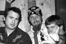 Bill: Andy is a bad ass. He drinks more than Hoaky and falls down just as much. He first joined our band while on hiatus from his band "Buckshot." He filled in for 1 year after HOaky quit. Then he went back to Buckshot. They've since quit playing - so we wooed him back. It took lots of pork cracklins and all-expense-paid visits to the oriental spa, but we won him back. He's a Cajun mofo who holds down the bass positon with serious rock style. I compare him to Lucky Dog (Chris Luckette) he gets the job done with no flash and no applomb - just a dedicated rocker bustin' through the set. Andy also sings an amazing version of Lovin Touchin Squeezin. No LIE!