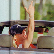 Is he or isn't he giving the finger? I'll bet he was! Mick Jagger was probably standing right behind the camera man. |