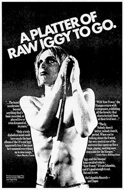 But we the viewer still have forty-four minutes of post-gig interviews with Iggy, James and Scott "Rock Action" Asheton to enjoy, during which we discover the "template" for "Death Trip" was none other than Frankie Ford's 1959 "Sea Cruise" …not to mention Mr. Goldman learning all about those notorious fade-outs, of course. It must go without even saying that Raw Power, to say nothing of Iggy Pop himself, seems to have aged not one iota since those g(l)ory days of '73. But what is surprising is just how perfectly this film captures every grunt, howl and lambaste of the original's pointed purpose, doing both the landmark album and its creators more than proud. Director/editors Joey Carey and Luis Valdes should immediately be awarded a trunkful of Oscars for bravely adhering to Iggy's "Fuck the dramatic hocus-pocus" edict throughout their production, I do say. Because, as no less an authority as the head Stooge Himself proclaims, "This shit really sizzles and we are so obviously a crack band in a class of our own." Raw Power Live is the living proof. Watch it today, and often. And Happy 68, Iggy !