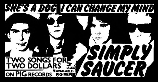To help get the word out a bit more I decided to plaster as much of Toronto as I could with flyers announcing The Very First Simply Saucer Pig Record! But I thought I'd be smart and use wallpaper paste instead of staples; that way, our handiwork couldn't get so easily ripped down off all the telephone poles. So I brought along my friend Martin E-Chord, who handled the paste bucket as well as played lookout, and by the time of the first train home in the morning we had the downtown core pretty well covered. Or should I say plastered. I wasn't all that smart though: by the time we got home the Metro Toronto Police had already called my house. "You have to come tear all your flyers down." Seems the cops were already pretty familiar with anything "Pig." They knew where I was. John Balogh: A lot of those bands, at the onset, didn't realize they were in the School of Hard on You. We all felt like we were the underdogs, and we were typically the underdogs. We were the bands that radio didn't play, television didn't show, and we were the unspoken at the dinner table. GPG: But I did it because it was fun, and because I thought Edgar and the band deserved it. And you know what? I can remain extremely proud to this day that I was the only person who managed to get Simply Saucer onto vinyl at the time. Since then, many, many others thought that maybe they could've done a better job of it, and believe me I would've been right there to help in any way I could if that had happened. But no one else at all stepped up to bat. No one.