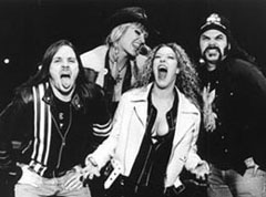 Blaine: I kinda got talked out of putting lyrics, cause you know Aerosmith doesn't put lyrics on. You can pretty much hear most of them. I've always liked bands like the Stones & thought it was cool when you delved farther into the lyrics and thought, wow, these are actually pretty good. The problem with a lot of bands, they are better off just being grunts & when you actual see their lyrics you go, 'woah, I didn't know that they were that dumb'. Ours are always good, if anyone cares to delve into the lyrics & I put a lot of work on them.