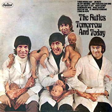 Just a year after the RUTLE SOUL scandal, there were problems with yet another Rutle album cover. The original cover for the 1966 U.S. album, TOMORROW AND TODAY was deemed to offensive to both the National Pork Producers Council and the US Poultry Association because there was no pork or chicken shown on the cover.