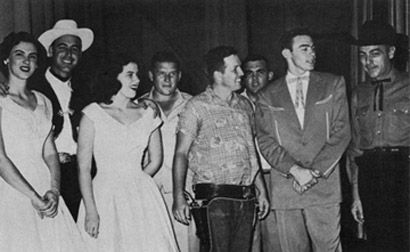 EC: How did you get to open for Elvis at SWT on Thursday, October 6th, 1955? It was the travelling Louisiana Hayride show, correct? Buddy: I was a member of the Rodeo Club and we were the sponsors and yes it was a travelling show. I had been singing around campus and had a bunch of friends that had heard me in the dorm and about. The president of the club was a good friend and told Horace Logan that he would like for him to put me on the show. Horace had them come get me and we talked. He ask what songs I'd like to sing and then let it be known that the king was in the house and when the King was in the house I couldn't sing any of the King's music. EC: How long had you been playing guitar and singing at that time? Buddy: I had started trying to learn the guitar my sophomore year in high school and hadn't learned much past me accompanying myself. Got that far and no further. I had never and still never sang professional in any way.
